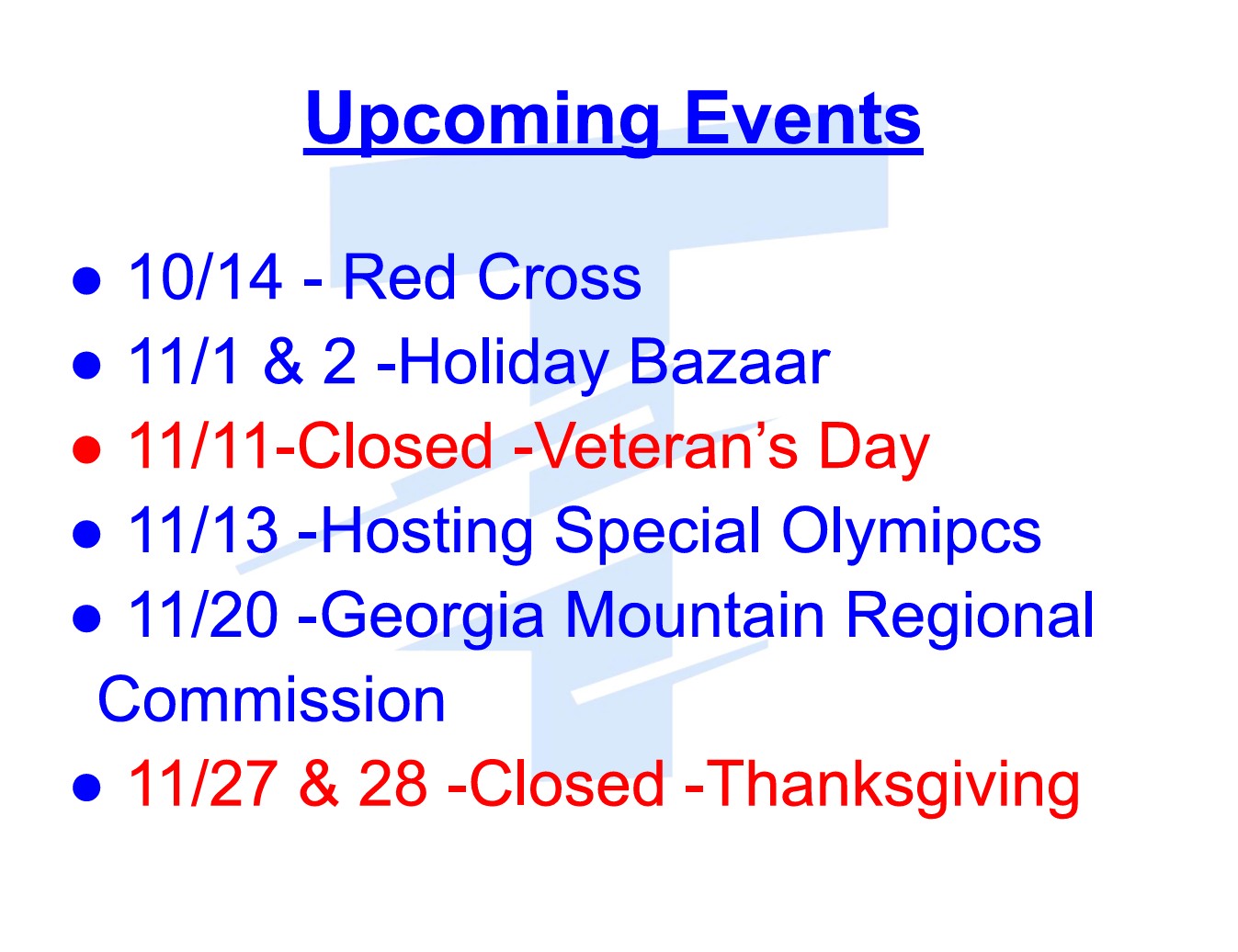UPCOMING EVENTS AND SPECIAL ANNOUNCEMENTS.
